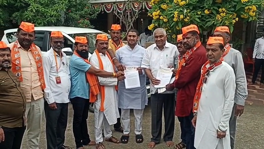धुळ्यात ग्रामीणचे आमदार राम भदाणे यांच्या निवासस्थानासमोर संभाजी ब्रिगेडचे डफली वाजवत आंदोलन…