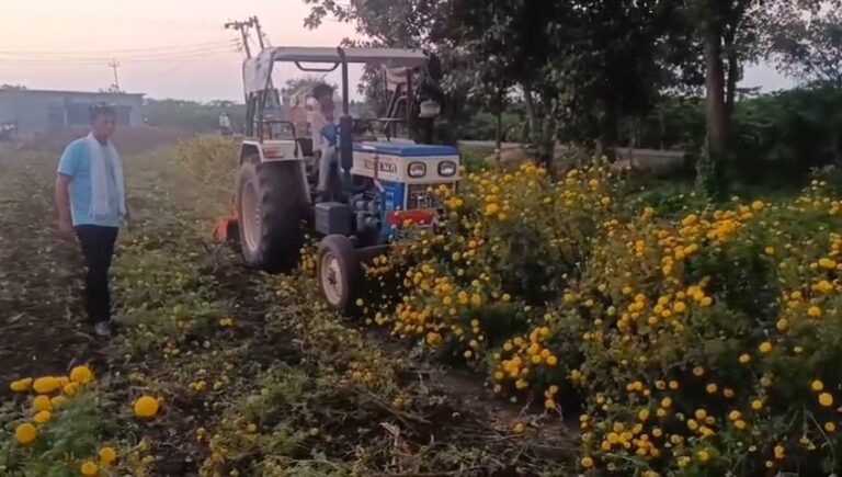 शिरपूर तालुक्यात झेंडू फुलांना भाव नाही; संतप्त शेतकऱ्याने सोन्यासारख्या पिकावर फिरवला रोटाव्हेटर!
