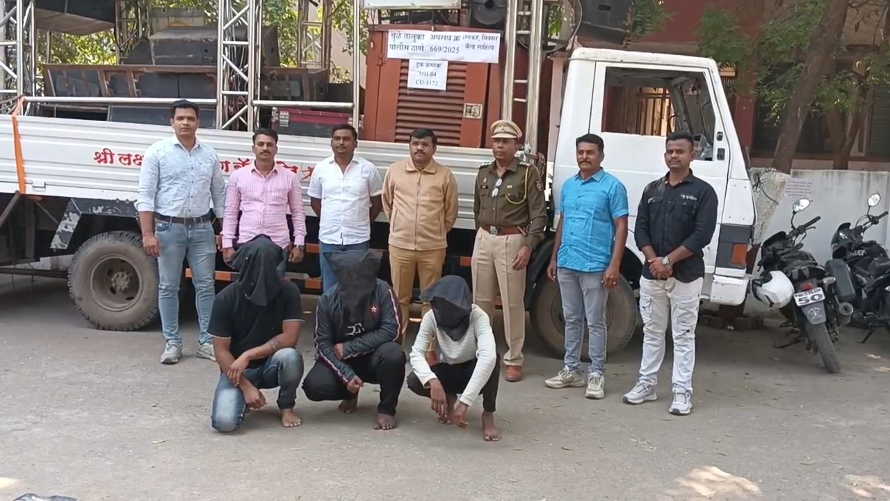 धुळे तालुका पोलीस ठाणे भाग-5 अंतर्गत अपराध क्रमांक 669/2025 भारतीय न्याय संहिता कलम 303(2) नुसार दाखल झालेल्या वाहनचोरी प्रकरणाचा तपास करताना पोलिसांनी उल्लेखनीय कामगिरी करीत तीन आरोपींना अटक करून ₹70,000 किंमतीचे टाटा LPT वाहन (MH-04-CU-1172) तसेच त्यावरील स्पीकर, मिक्सर व बँड साहित्य हस्तगत केले आहे.