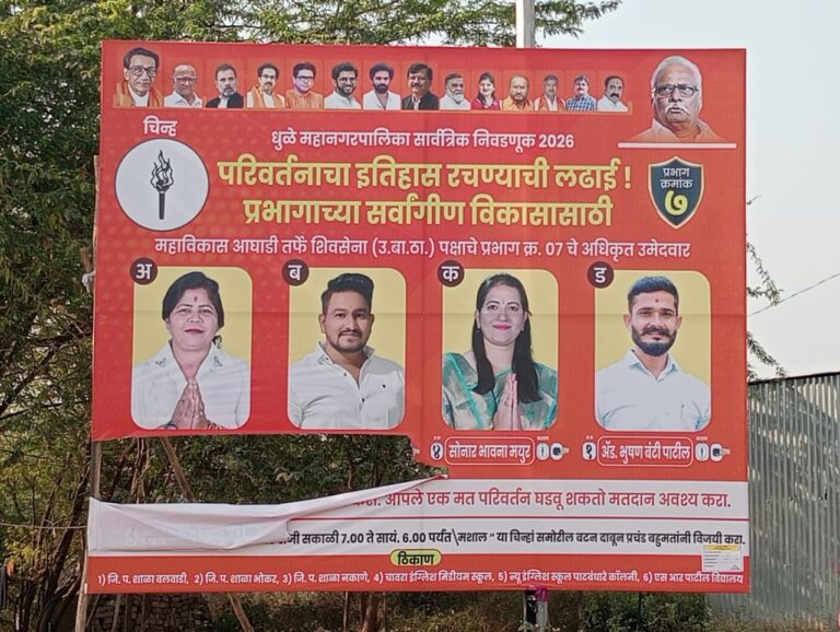 धुळे शहरातील प्रभाग ७ मध्ये शिवसेना ठाकरे गटाच्या उमेदवारांचे बॅनर फाडल्याची घटना; कठोर कारवाईची मागणी